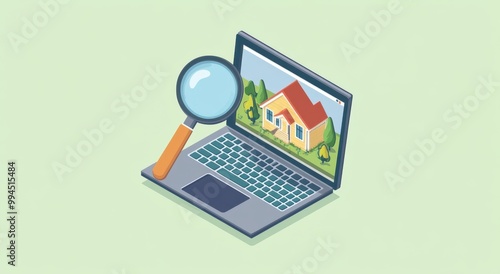 A laptop computer with a magnifying glass over a real estate website Generative AI