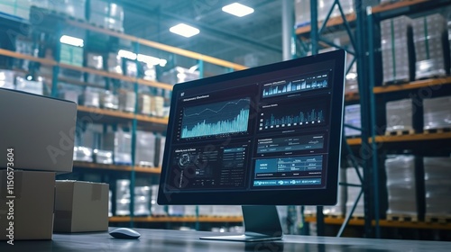 A large computer monitor displaying a dashboard with data visualizations