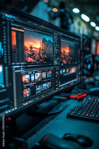 audio, background, colours, computer, contemporary, content, control, creative, design, designer, desk, desktop, digital, display, editing, editor, entertainment, equipment, film, footage, graphic, illuminated, innovation, job, keyboard, laptop, media, modern, monitor, motion picture, multimedia, occupation, office, production, professional, project, screen, software, sophisticated, sound, speaker, studio, stylish, tech, technology, video, videographer, window, working