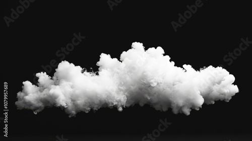 A large white smoke cloud billowing softly, set against a solid black backdrop