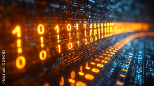 A line of binary numbers with the numbers 1 through 10. Digital data stream background with glowing binary code and bokeh lights. Abstract digital technology wallpaper.