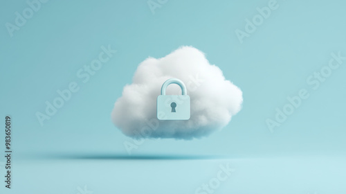 A lock icon hovering over cloud symbolizes secure data storage and protection in digital realm. This image conveys sense of safety and reliability in cloud computing