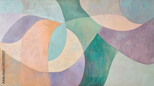 A lyrical abstraction using continuous curving shapes in harmonious pastel shades