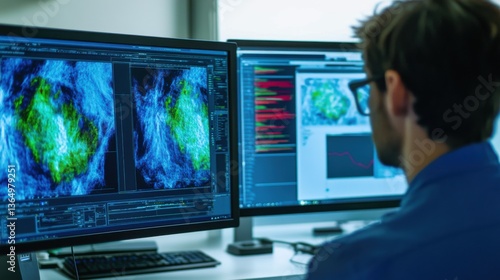 A machine learning engineer developing predictive models for climate change forecasting, research lab with climate data, machine learning algorithms