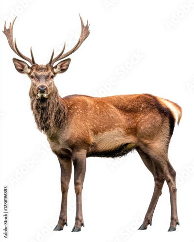 A majestic deer stands proudly in its natural habitat. The antlers reach high towards the sky. This beautiful creature embodies grace and strength. Generative AI