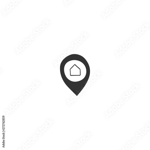 A map pointer silhouette with a house, vector hand drawn icon. Property rental theme.