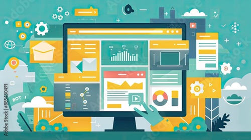 A marketer designing a landing page using a website builder, with drag-and-drop features and customization options visible.