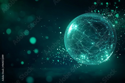 A mesmerizing digital globe surrounded by glowing particles, symbolizing connection and technology in a dark background.