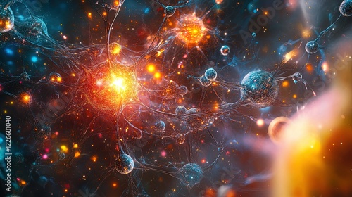 A mesmerizing visualization of artificial intelligence, featuring neural networks and data processing in a colorful, dynamic environment