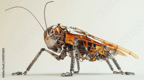 A Metallic, Steampunk-Style Grasshopper Robot