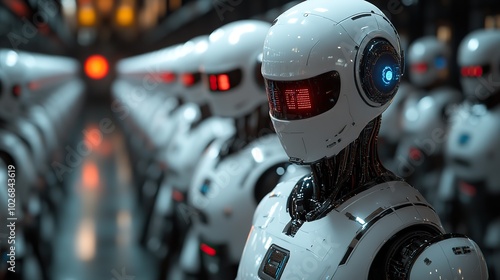 A metaverse smart city with AI, IoT, and automated 3D robot avatars working on digital city building models in a cyberspace setting.