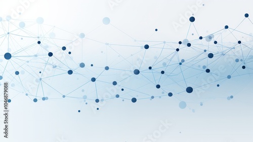 A minimalist design showcasing a white background with blue dots and lines connected in a web-like structure,