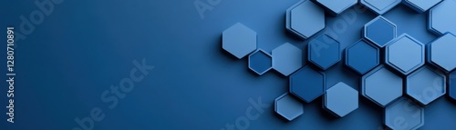A modern abstract design featuring blue hexagons arranged on a textured blue background, creating a visually appealing geometric pattern.