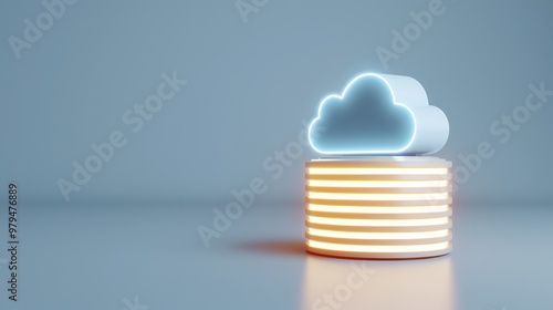 A modern cloud symbol atop stacked disks, representing cloud computing and data storage technology in a sleek design.
