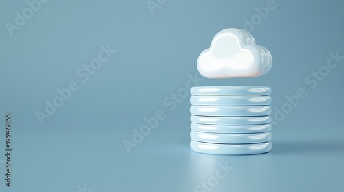 A modern cloud symbol hovering above stacked disks, representing cloud computing and digital storage solutions.