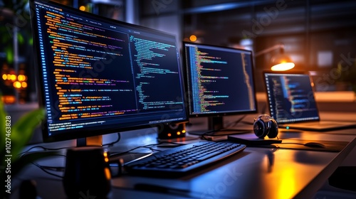 A modern computer monitor visualizes dynamic programming and application development
