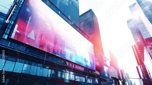 A modern digital billboard display with clear graphics and vibrant colors on a white background.