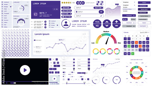 A modern interface kit with buttons, graphs, and elements for creating web applications and dashboards, ideal for business, statistics, and finance.
