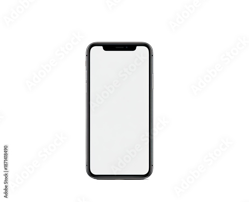 A modern smartphone, front view, with a blank screen