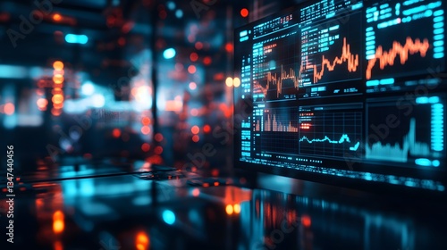 a modern technology data screen displaying graphs and charts with a blurred background