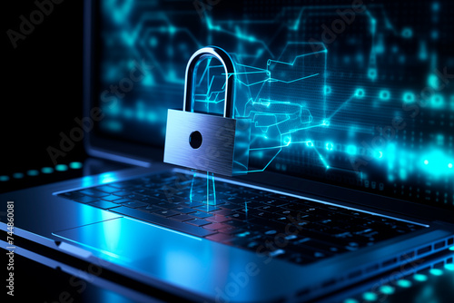 A padlock symbolizing cybersecurity on a digital circuit board, representing data encryption and network protection.
