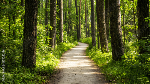 A path through a forest with trees on both sides