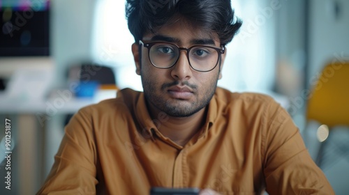 A person studying their mobile device