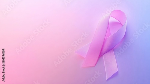 A pink ribbon on a pastel colored gradient background