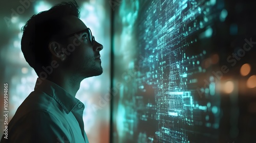 A professional presenting blockchain transaction flows displayed on AR visualization systems in a collaborative session. 4k resolution, Cinematic Scene