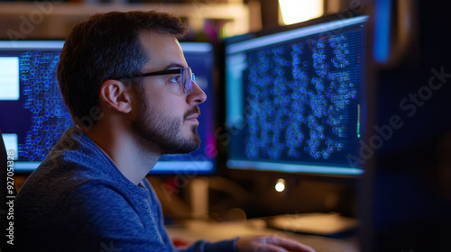 A quantum computing engineer programming algorithms on a specialized workstation