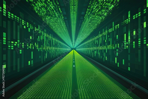 A Radiant Digital Highway of Green Pixel Data on a Dark Background