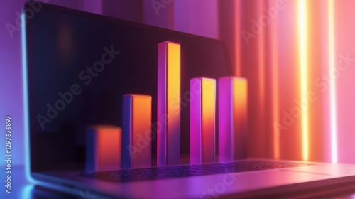 A realistic D bar chart emerging from a laptop screen, symbolizing data analysis and business intelligence