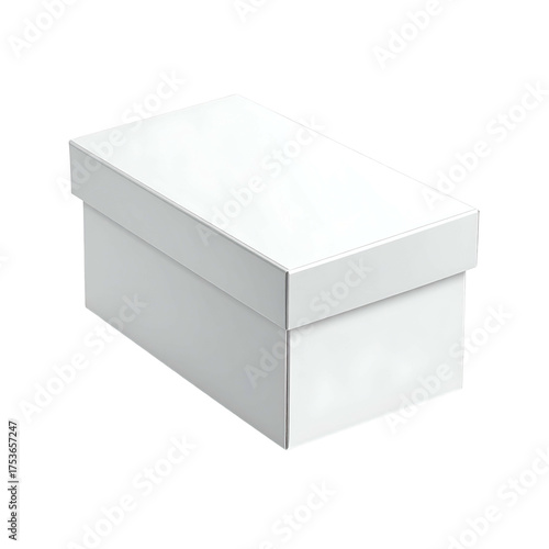 A rectangular, white cardboard box with a separate lid, set against a dark background