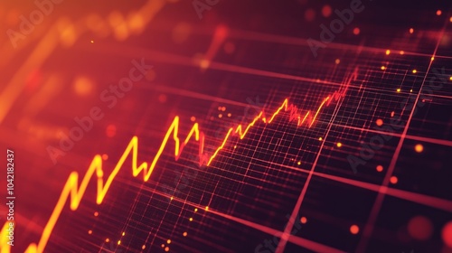A red and yellow line graph is shown on a black background with a grid pattern, representing data growth and progress.