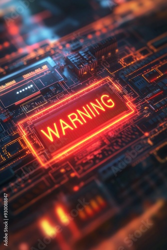 A red "WARNING" flashing on a computer screen, surrounded by a faint glow, representing an urgent security alert in a digital environment.