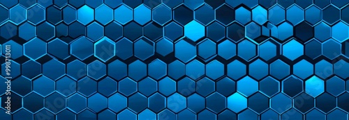 a repeating pattern of blue hexagonal shapes, creating a visually striking and geometric design