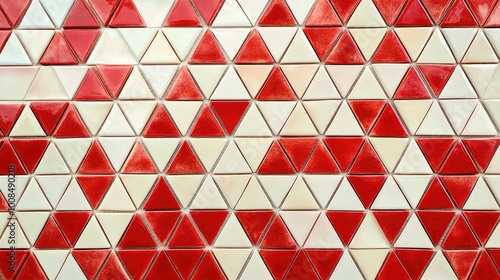 A repeating pattern of small triangles in alternating red and white, each tile contributing to a larger, interwoven triangular design.