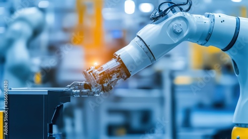 A robotic arm in a cutting edge robotics lab, assembling autonomous robots for manufacturing automation with AI precision, Robotics-tech style