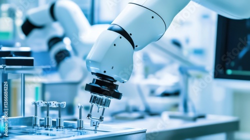 A robotic arm in a medical research lab, assembling customized orthopedic implants with high precision for patient-specific treatments, Med-tech style