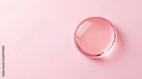 A round swatch of soft pink serum oil rests gently on a pastel surface, creating an inviting atmosphere. The glistening texture highlights its potential for skin nourishment and beauty enhancement