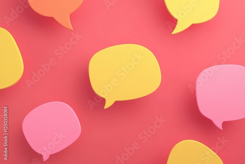 A row of colorful speech bubbles on a red background, with ample copy space for text.