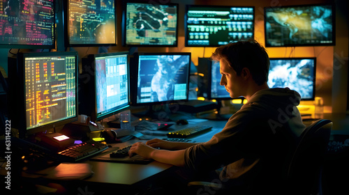 A scene showcasing a software developer coding, collaborating, and testing applications.