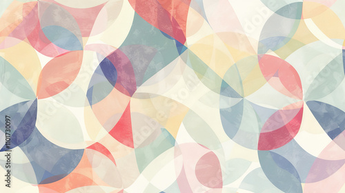 A seamless, intricate pattern of geometric shapes in soft, muted tones,...