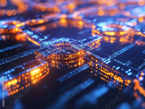A secure blockchain network protecting financial transactions, visualized by encrypted data blocks linked together in real-time.