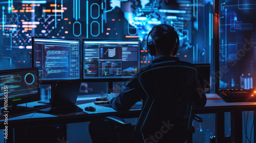 A secure remote work environment where employees follow security protocols, such as two-factor authentication and encrypted cloud storage.