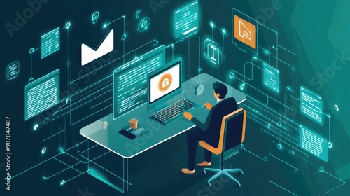 A secure work-from-home setup with a VPN connection and encrypted communication tools for data protection.