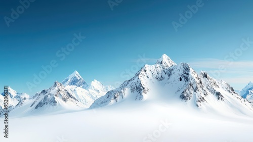 A serene winter landscape showcasing majestic snow-covered mountains under a clear blue sky, perfect for nature and travel themes.