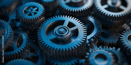 A series of interconnected cogs and gears representing efficiency and precision