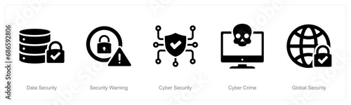 A set of 5 Cyber Security icons as data security, security warning, cyber security