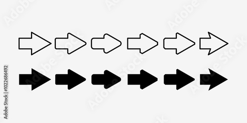 A set of different navigation arrows. Arrows pointing in the direction. Simple icons. Arrow options.